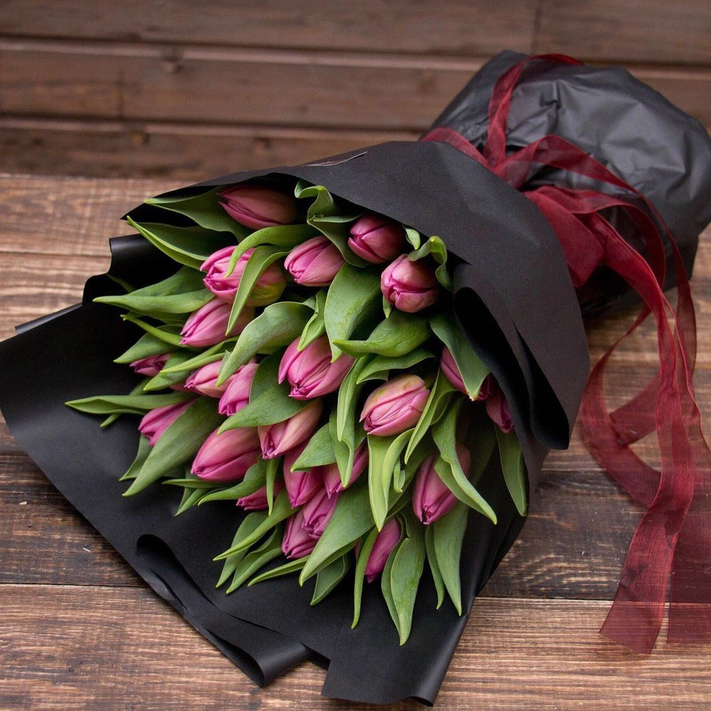 Современный и стильный букет тюльпанов. Цвета в ассортименте